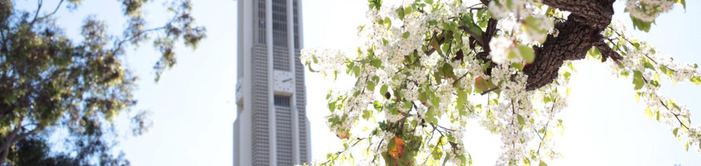 UCR bell tower in the spring 1920x455